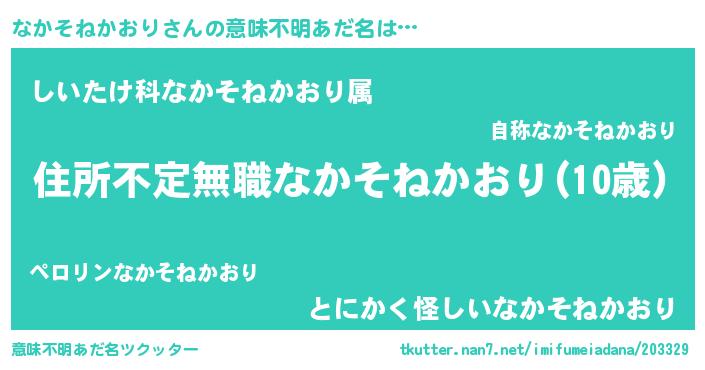 | 男性向けラノベタイトル風あだ名 | 『この素晴らしい世界になかそねかおりを!』 |