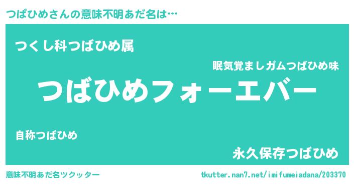 | ヒーロー風カッコイイあだ名 | 『ウルトラつばひめマン』『ネオツバヒメ』 |