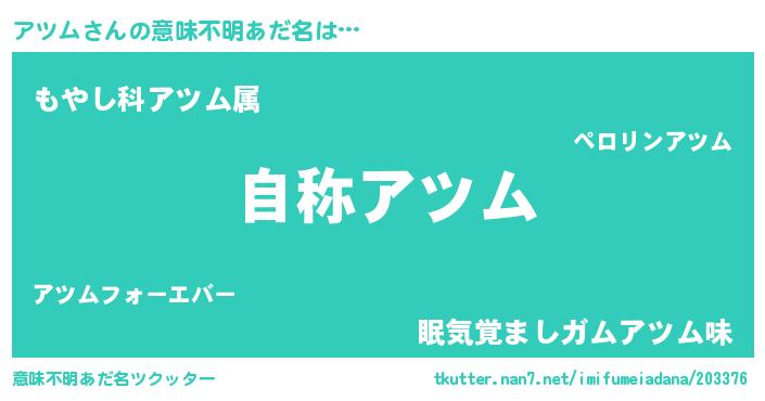 | 男性向けラノベタイトル風あだ名 | 『Re:アツムから始める異世界生活』 |
