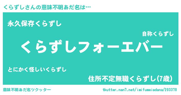 | 女子向けラノベタイトル風あだ名 | 『くらずしの雑貨屋さん』 |