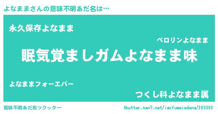 | 欧米人風あだ名 | 『ダニエルよなまま』『マイケルよなまま』 |