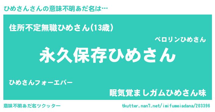 | 男性向けラノベタイトル風あだ名 | 『ひめさんという概念が存在しない退屈な世界 』 |