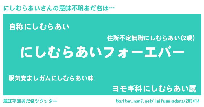 | ファンタジー風あだ名 | 『エターナルニシムラアイー』 |