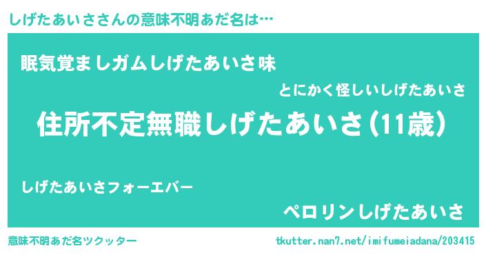 | 欧米人風あだ名 | 『ダレノガレしげたあいさ』 |