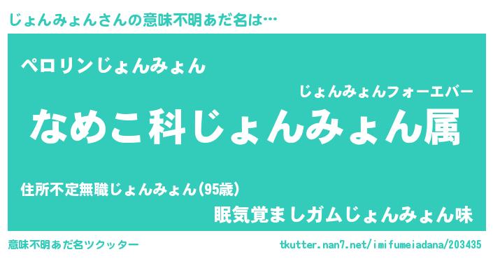 | 欧米人風あだ名 | 『じょんみょん・ステッグマイヤー』 |