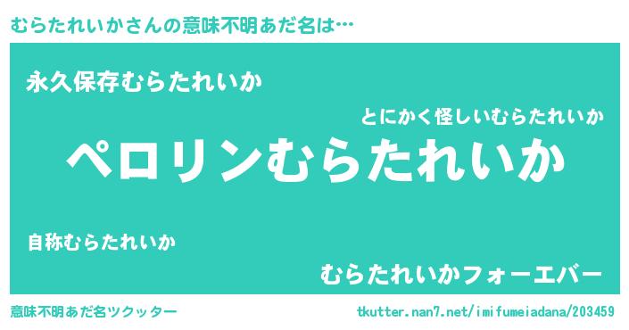 | 男性向けラノベタイトル風あだ名 | 『むらたれいかに滅ぼされるだけの簡単なお仕事です』 |