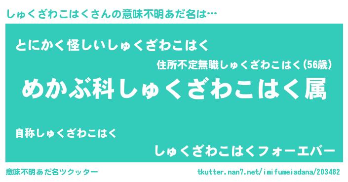 | 料理風あだ名 | 『しゅくざわこはくごはん』 |