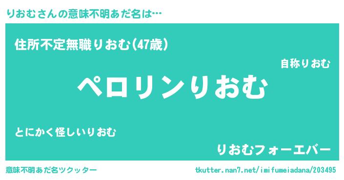 | 男性向けラノベタイトル風あだ名 | 『リオムアートオンライン』 |