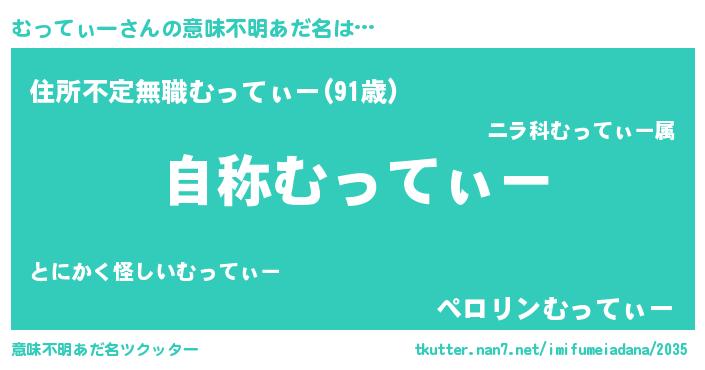 | 男性向けラノベタイトル風あだ名 | 『うちのむってぃーが世界を掌握している!』 |