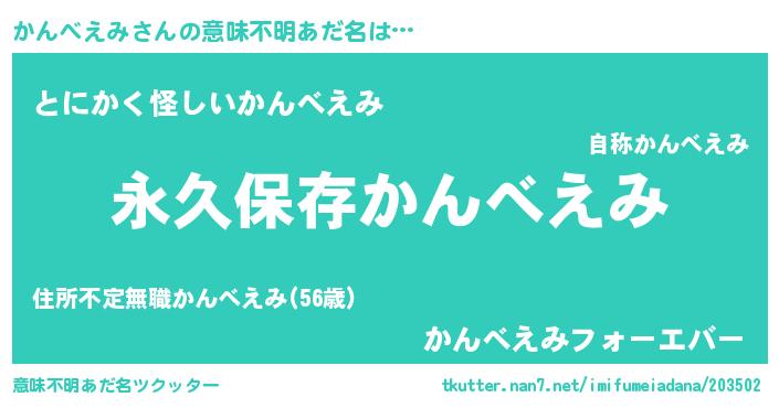 | 男性向けラノベタイトル風あだ名 | 『かんべえみという概念が存在しない退屈な世界 』 |