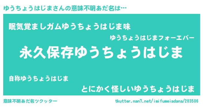 | 男性向けラノベタイトル風あだ名 | 『ゆうちょうはじまという概念が存在しない退屈な世界 』 |