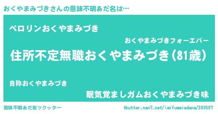 | 男性向けラノベタイトル風あだ名 | 『この素晴らしい世界におくやまみづきを!』 |