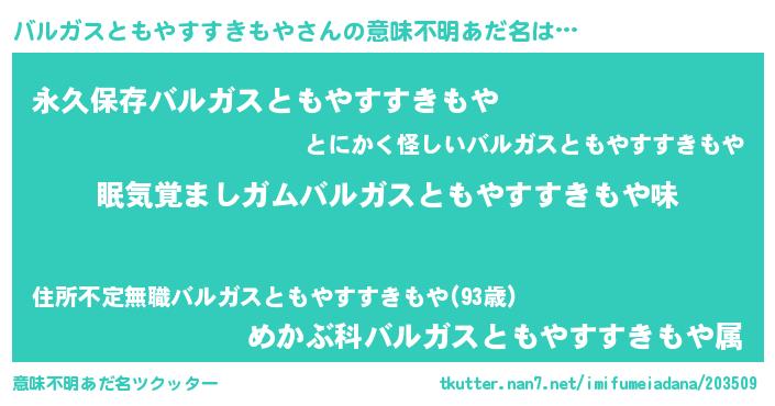 | ヘコむあだ名 | 『バルガスともやすすきもや(爆)』『バルを』 |
