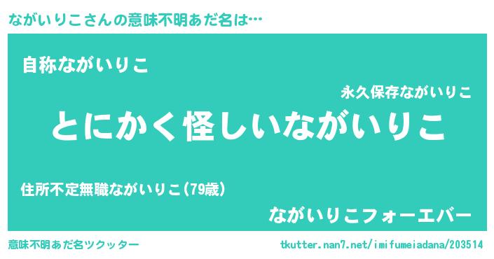 | 女子向けラノベタイトル風あだ名 | 『ながいりこ様がみてる』 |
