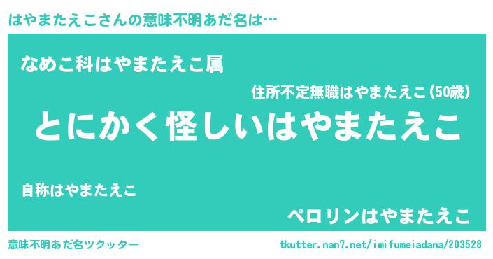 | 女子向けラノベタイトル風あだ名 | 『はやまたえこは平凡を望む』 |