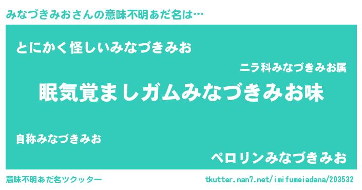 | 料理風あだ名 | 『みなづきみおの炊き込みご飯』 |