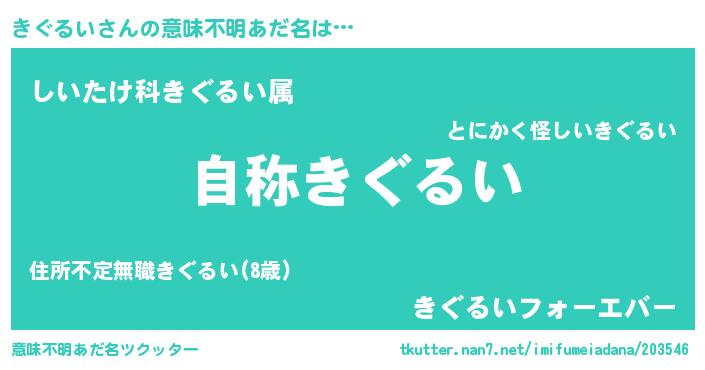 | 男性向けラノベタイトル風あだ名 | 『Re:きぐるいから始める異世界生活』 |