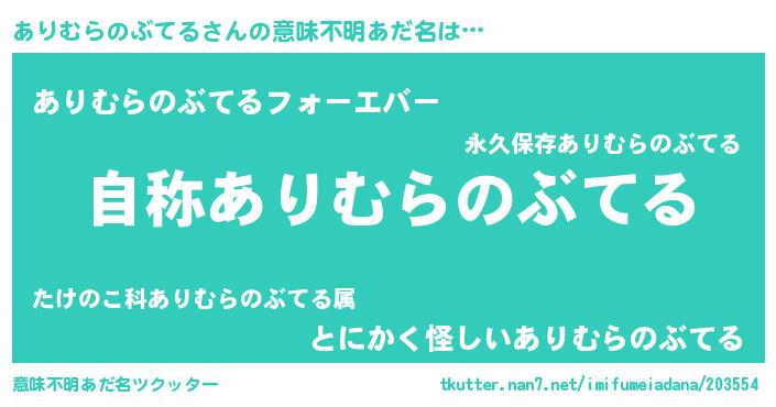 | 女子向けラノベタイトル風あだ名 | 『ありむらのぶてるなんてお断りですっ。』 |