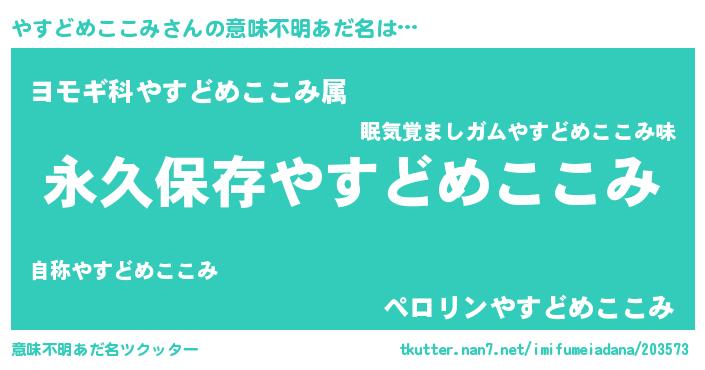 胡散臭い通販商品みたいなあだ名 | 『来世でも幸せになれる健康食品…その名も「やすどめここみ」』 |