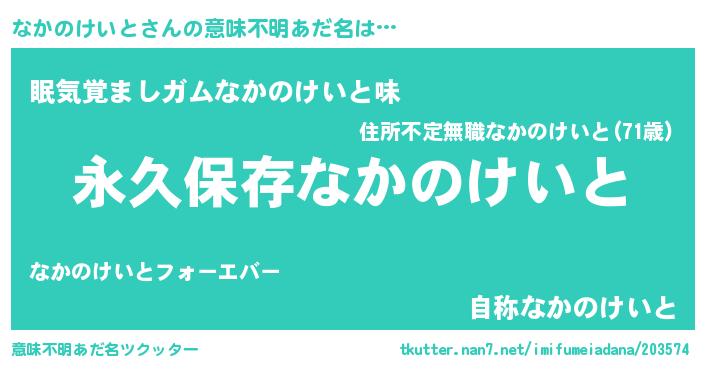 | 胡散臭い通販商品みたいなあだ名 | 『絶対に幸福をもたらす健康食品…その名も「なかのけいと」』 |