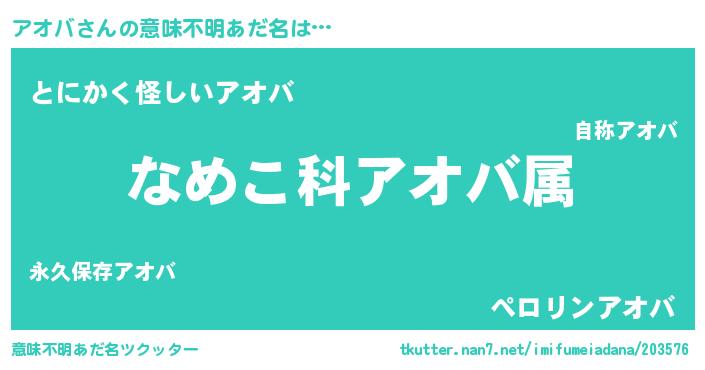 | ヘコむあだ名 | 『アオを』『アオふぇ~』『なまこ酢』 |