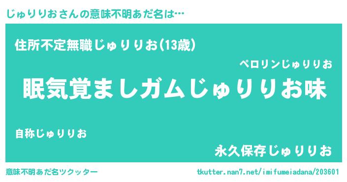 | 男性向けラノベタイトル風あだ名 | 『はたらくじゅりりおさま!』 |