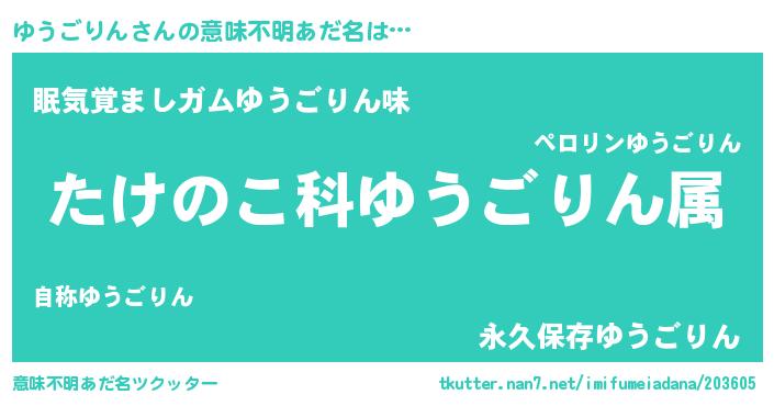 | ヘコむあだ名 | 『ゆうごりん(笑)』『ゆうっふぃ~』 |