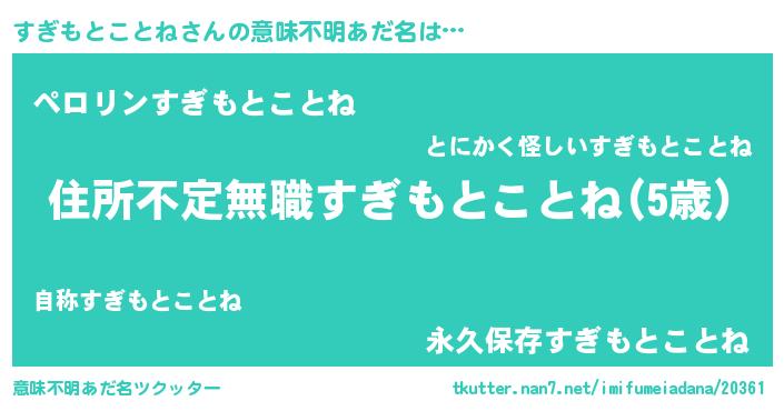 | 男性向けラノベタイトル風あだ名 | 『この素晴らしい世界にすぎもとことねを!』 |