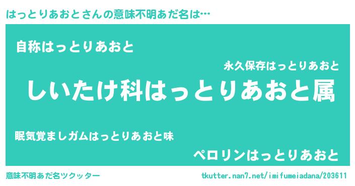 | 男性向けラノベタイトル風あだ名 | 『ハットリアオトスレイヤー』 |