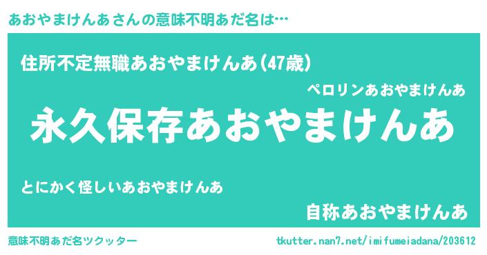 | 男性向けラノベタイトル風あだ名 | 『あおやまけんあという概念が存在しない退屈な世界 』 |