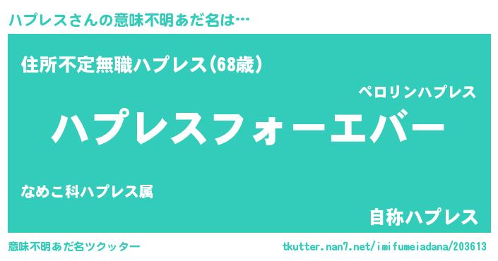 | 欧米人風あだ名 | 『ハプレスクリステル』 |