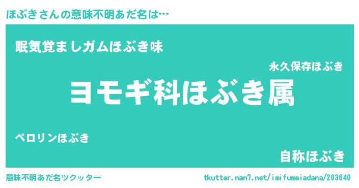 | ヒーロー風カッコイイあだ名 | 『天空の使者ほぶき』『超時空戦士ホブキ』 |