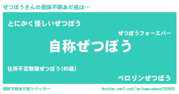 | ピコ太郎風あだ名 | 『ゼツ十郎』『ゼコ史郎』『ピゼ八郎』 |
