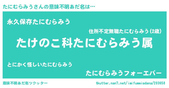 | 欧米人風あだ名 | 『たにむらみう・ステッグマイヤー』 |