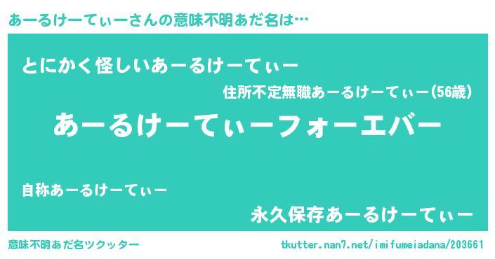 | 欧米人風あだ名 | 『あーるけーてぃークリステル』 |