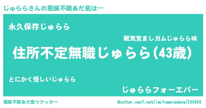 | 伝説のあだ名 | 『聞きしに勝る暗殺者じゅらら』 |