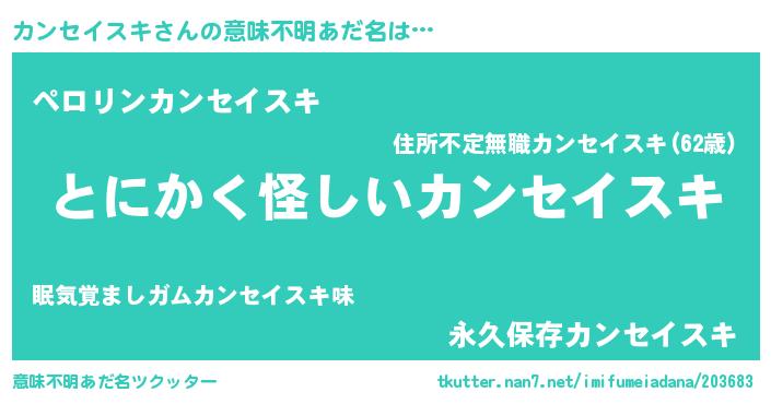 | 男性向けラノベタイトル風あだ名 | 『カンセイスキの嫁は女の子じゃないと思った?』 |