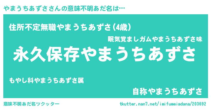 | 伝説のあだ名 | 『古より伝わる吟遊詩人やまうちあずさ』 |