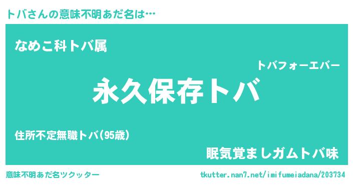 | 胡散臭い通販商品みたいなあだ名 | 『来世でも幸せになれる健康食品…その名も「トバ」』 |