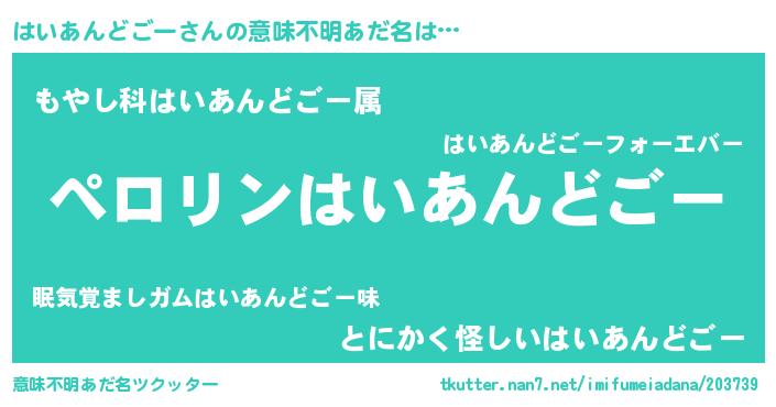| 2回繰り返すあだ名 | 『はいはい』『わさわさ』『ははいい』 |