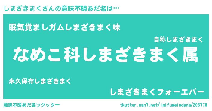 | 男性向けラノベタイトル風あだ名 | 『転生したらしまざきまくだった件』 |