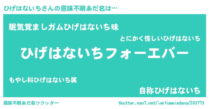 | ファンタジー風あだ名 | 『エターナルヒゲハナイチー』 |