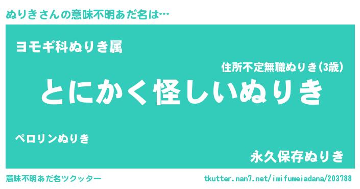 | ピコ太郎風あだ名 | 『ヌリ八郎』『ピコヌ郎』『ヌコ一郎』 |