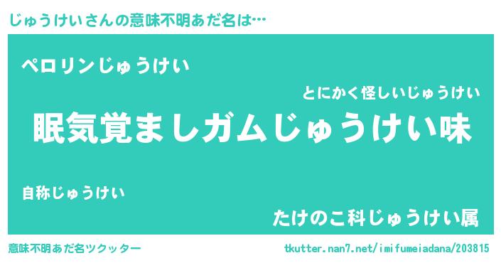 | ヒーロー風カッコイイあだ名 | 『慈愛の使者じゅうけい』『魔戒騎士ジュ』 |