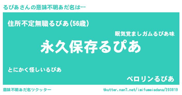 | ヘコむあだ名 | 『るぴあ(笑)』『るぴにゅー』 |