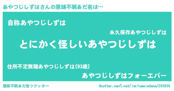 | ポケモン風あだ名 | 『ヒアヤツジシズハ』『アヤゴンZ』 |