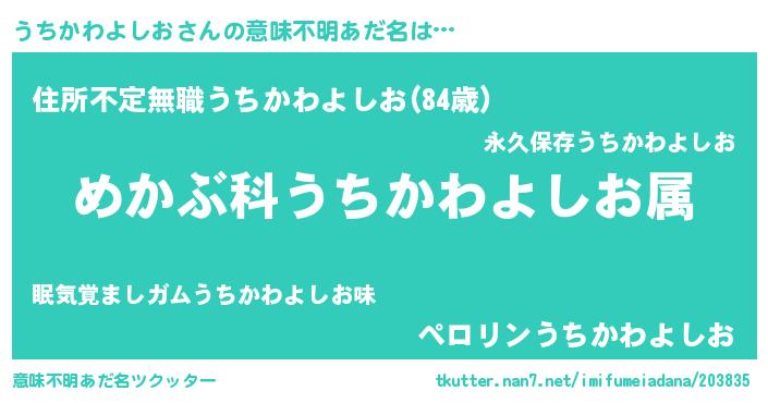 | ヘコむあだ名 | 『うちもー』『うちかわよしお(震え声)』 |