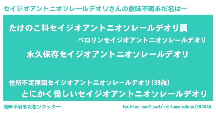 | 可愛いあだ名 | 『セイジオアントニオソレールデオリママ』 |