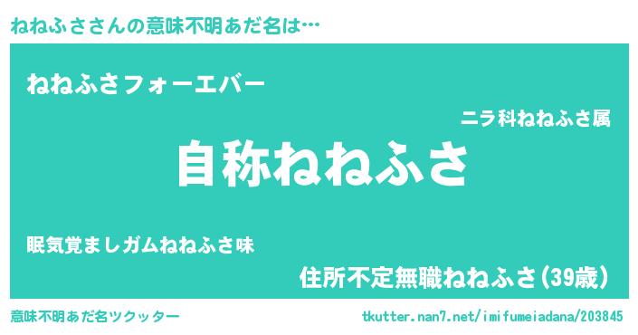 | 男性向けラノベタイトル風あだ名 | 『魔法科高校のねねふさ』 |