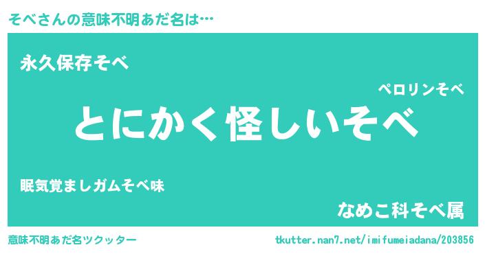 | 女子向けラノベタイトル風あだ名 | 『そべの卵を拾いまして』 |